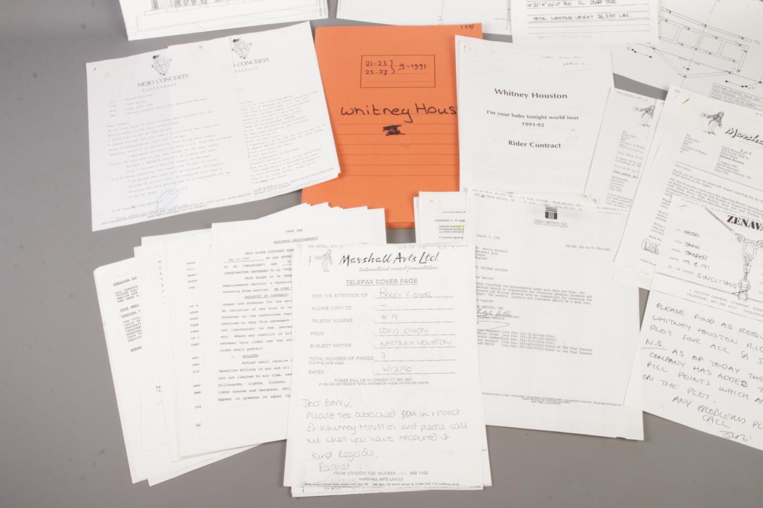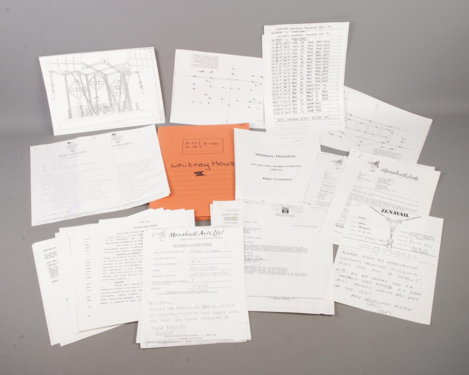 A Whitney Houston 'Rider Contract' for her 'I'm Your Baby Tonight World Tour' 1991-1992 as well as detailing of her tour, locations, memos, contracts, correspondence, technical specifications, stage plans etc.