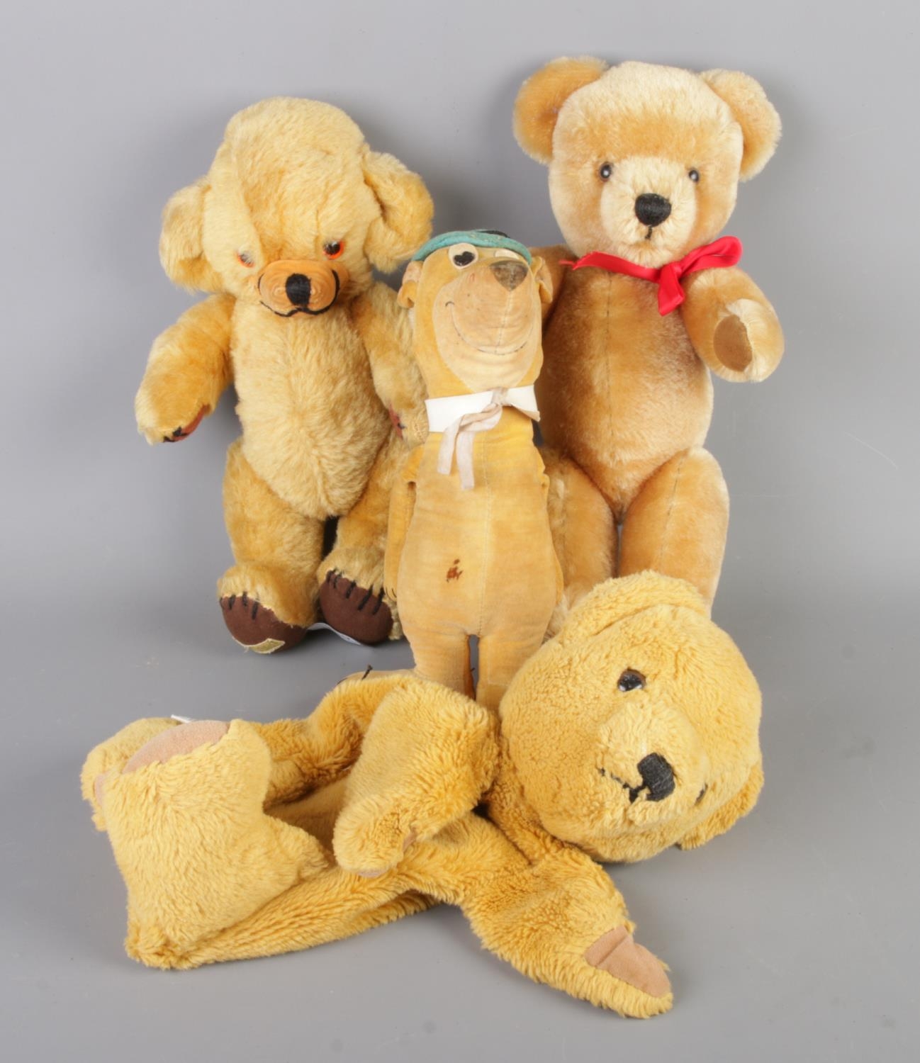 Four Merrythought bears. Includes mohair Cheeky bear, Yogi bear, puppet and one other jointed example.