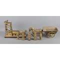 A collection of mining memorabilia. to include three miniature miners lamps, horse and cart and miniature figures.
