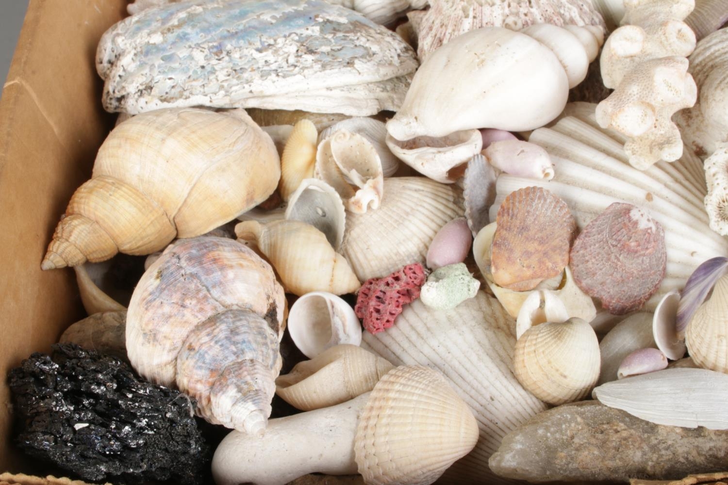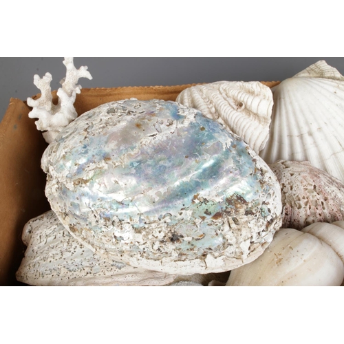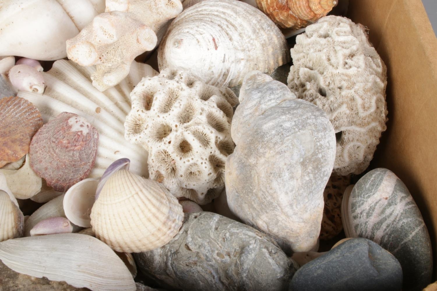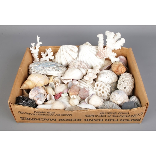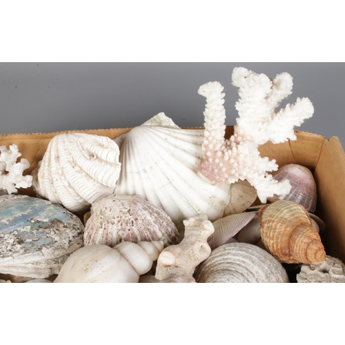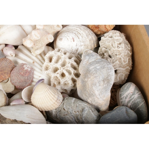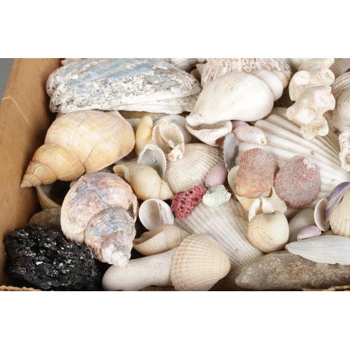 A large collection of seashells, corals and rock specimens, comprising assorted natural forms, colours and sizes.