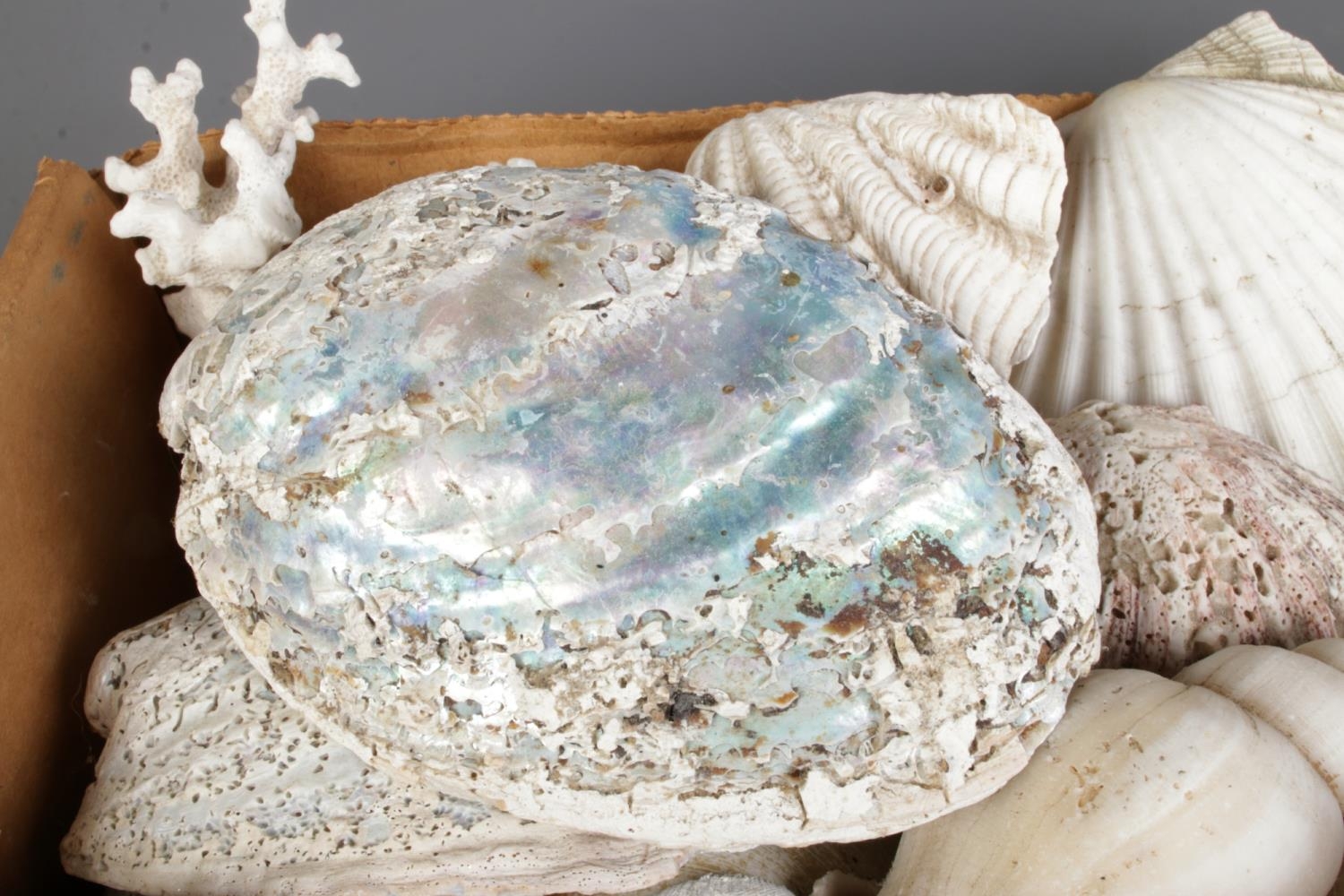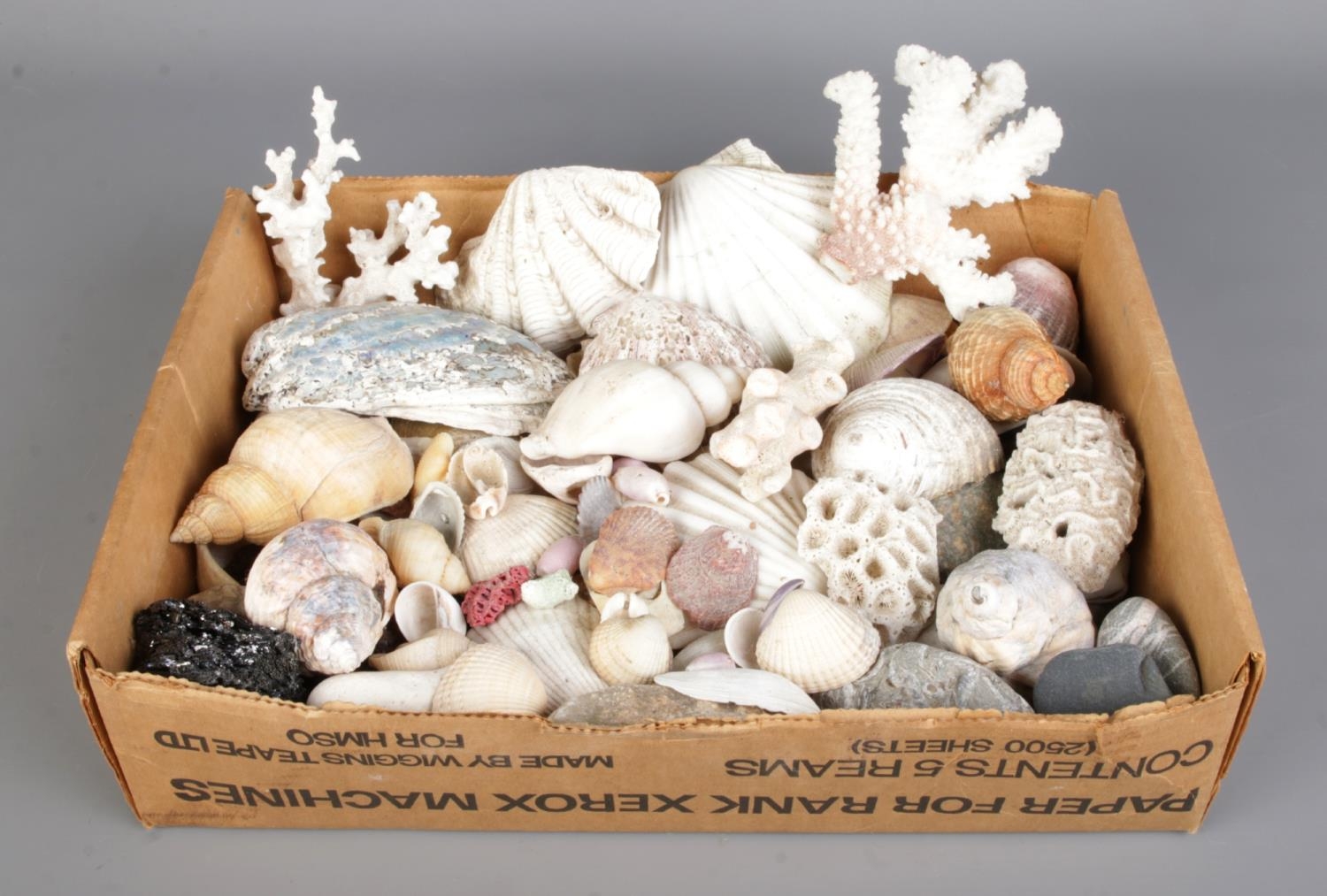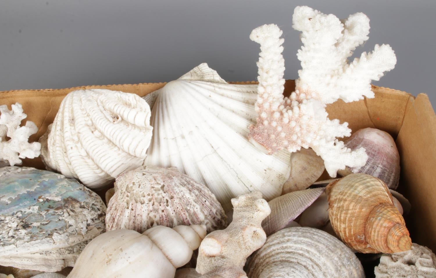 A large collection of seashells, corals and rock specimens, comprising assorted natural forms, colours and sizes.