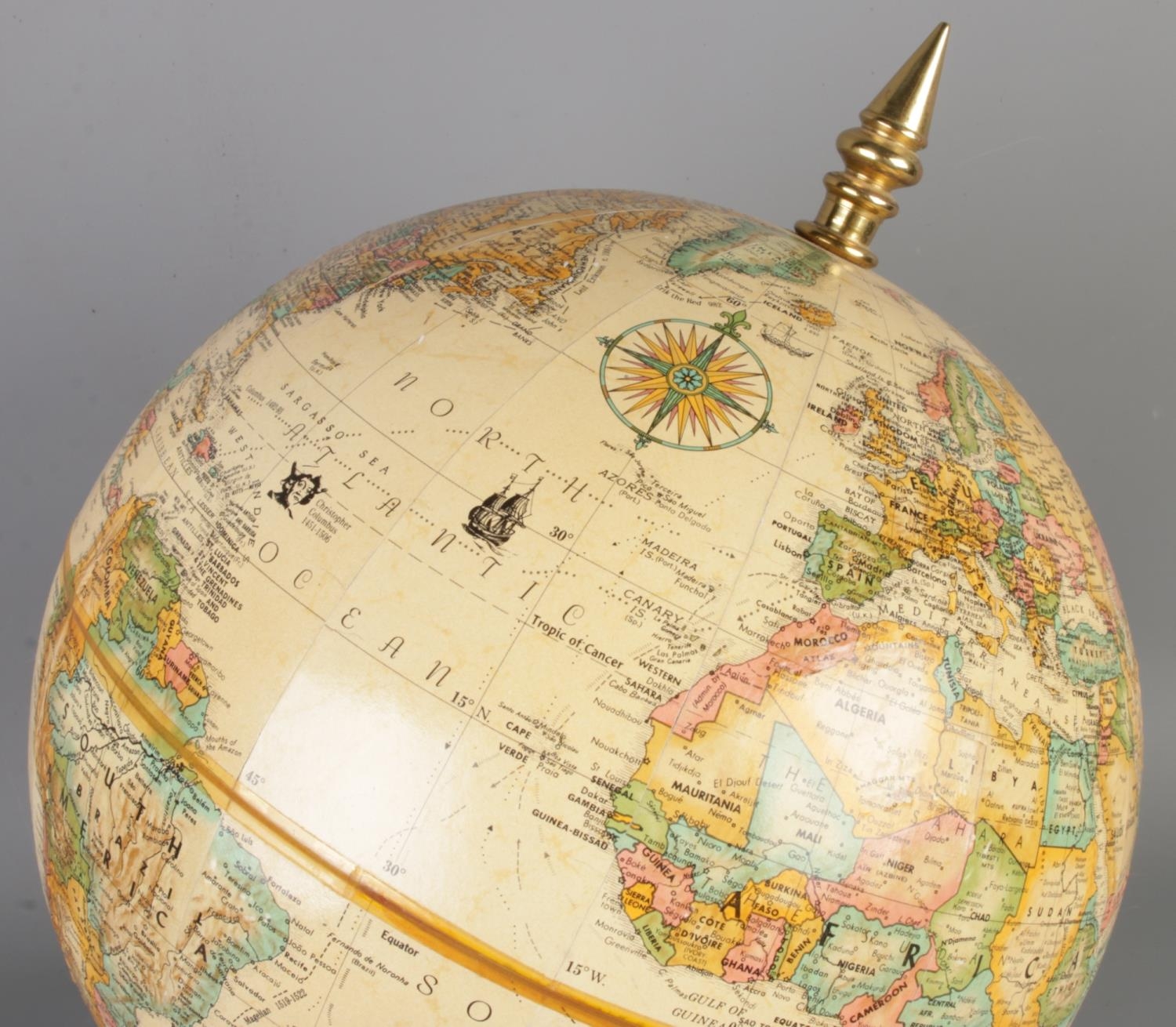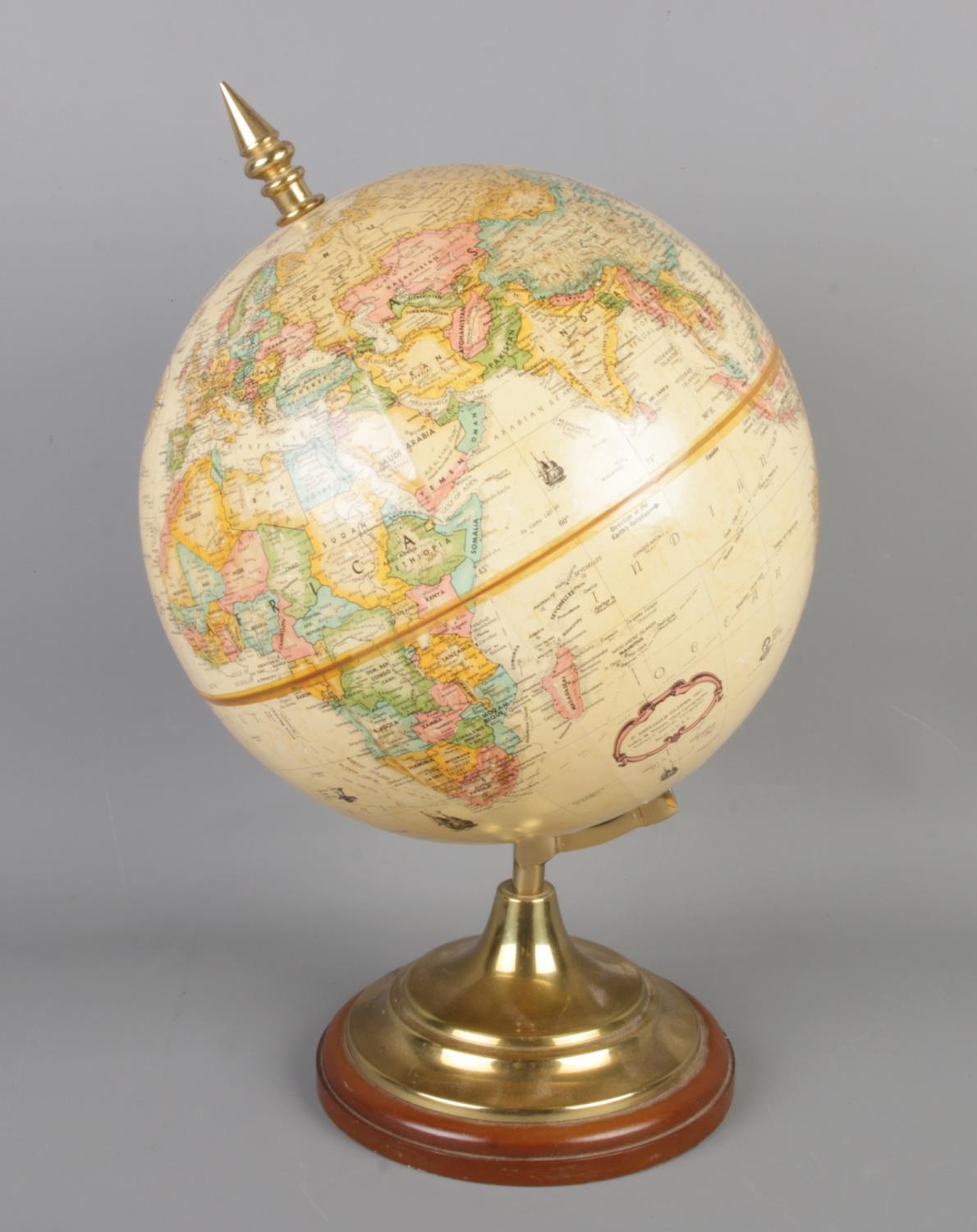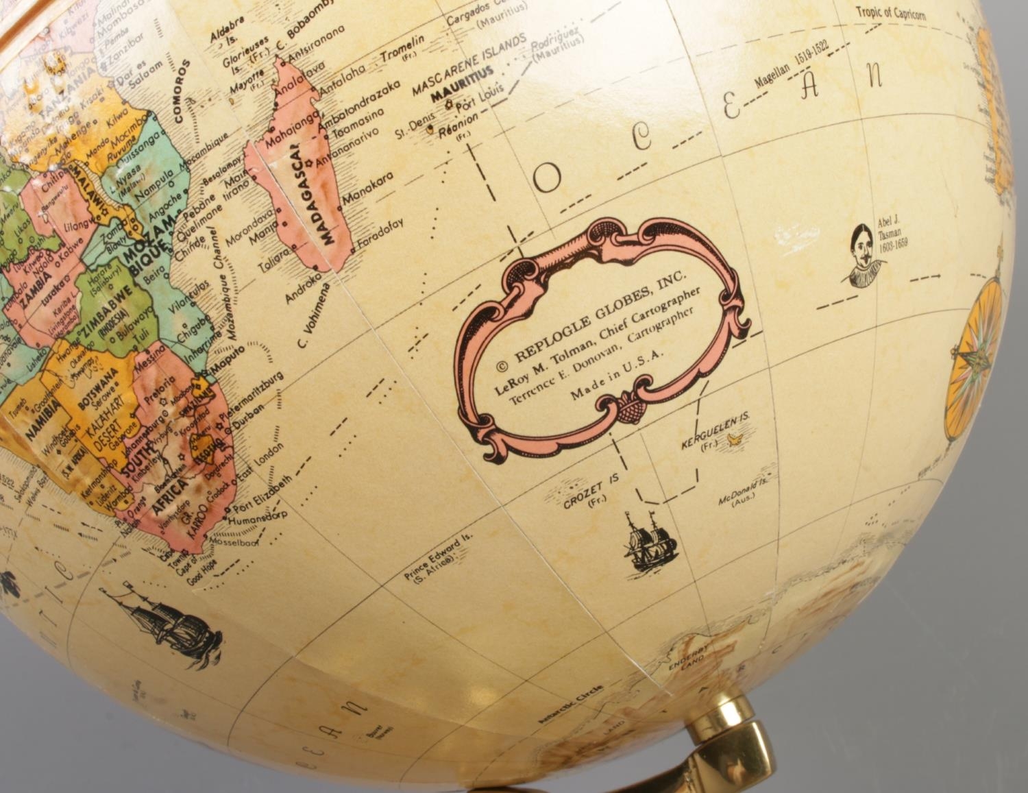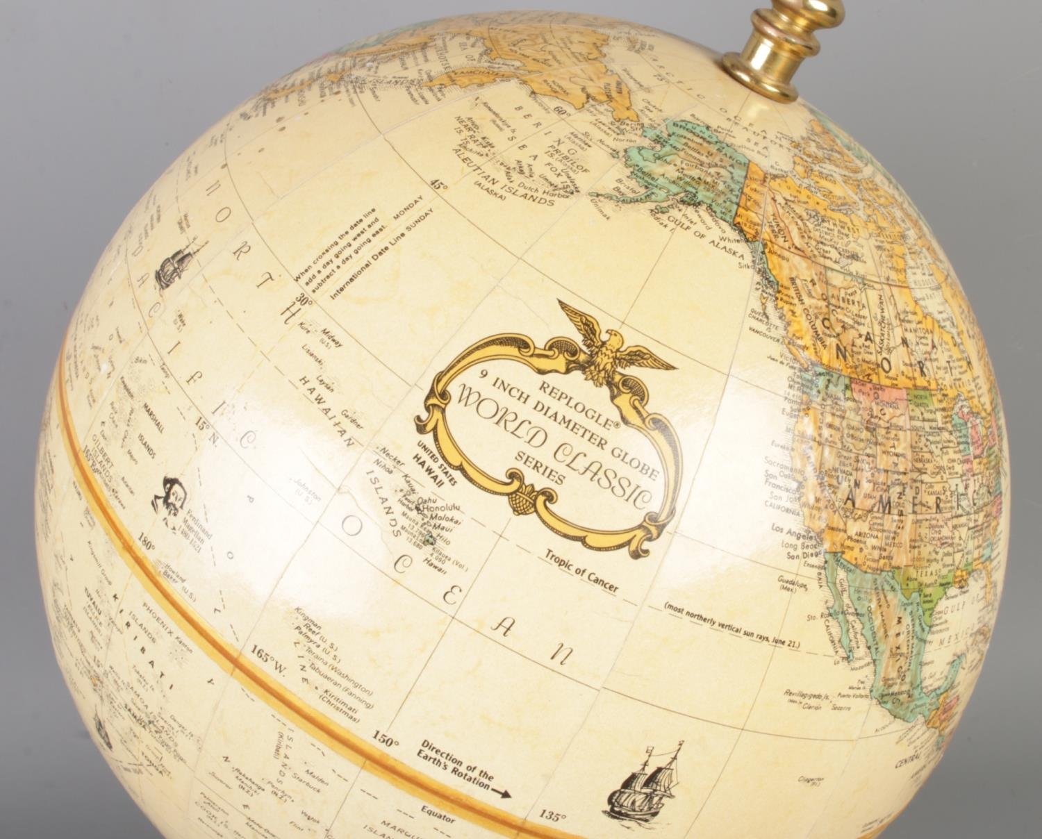 A hardwood based educational globe by Replogle Globes Inc. USA, height 36cm.