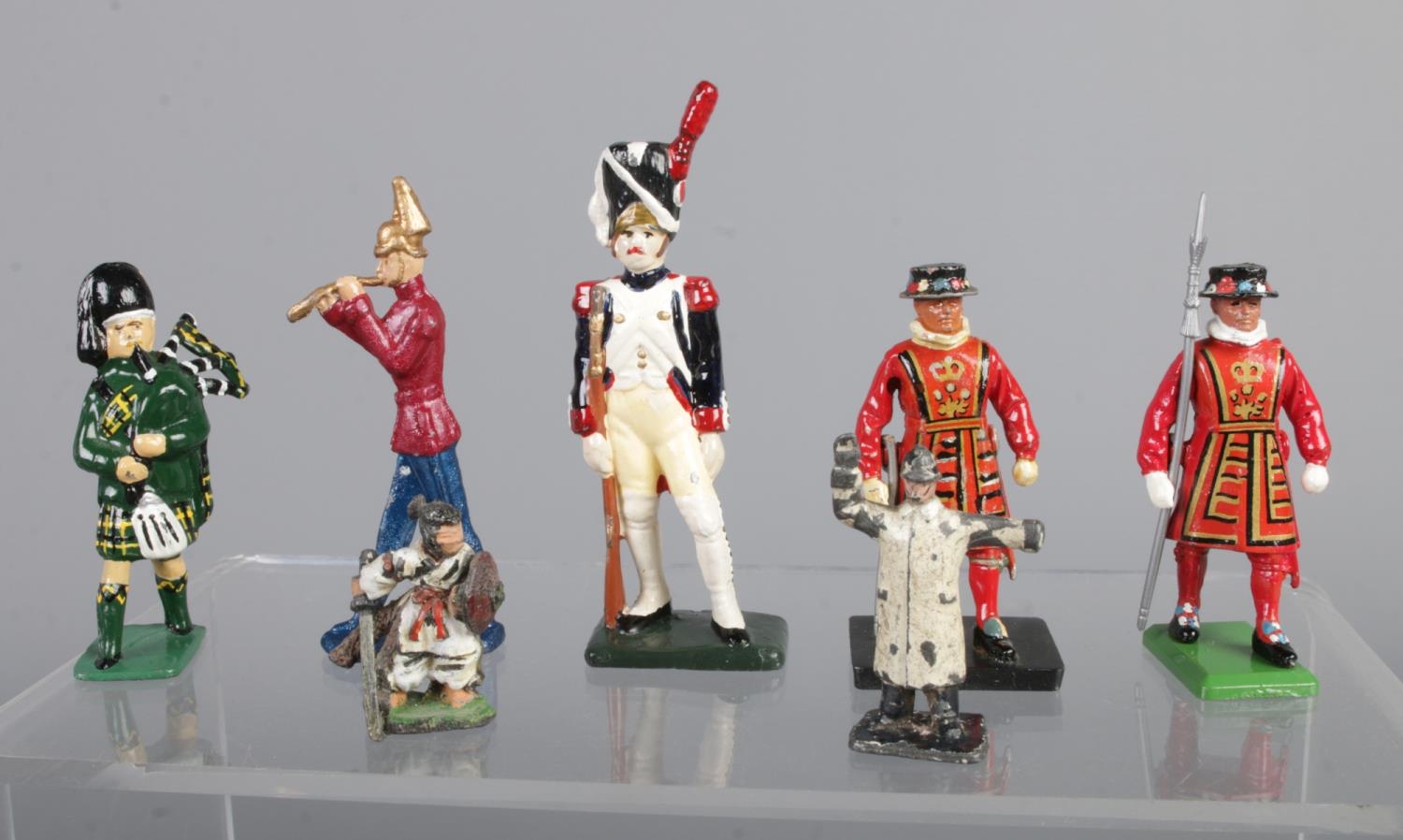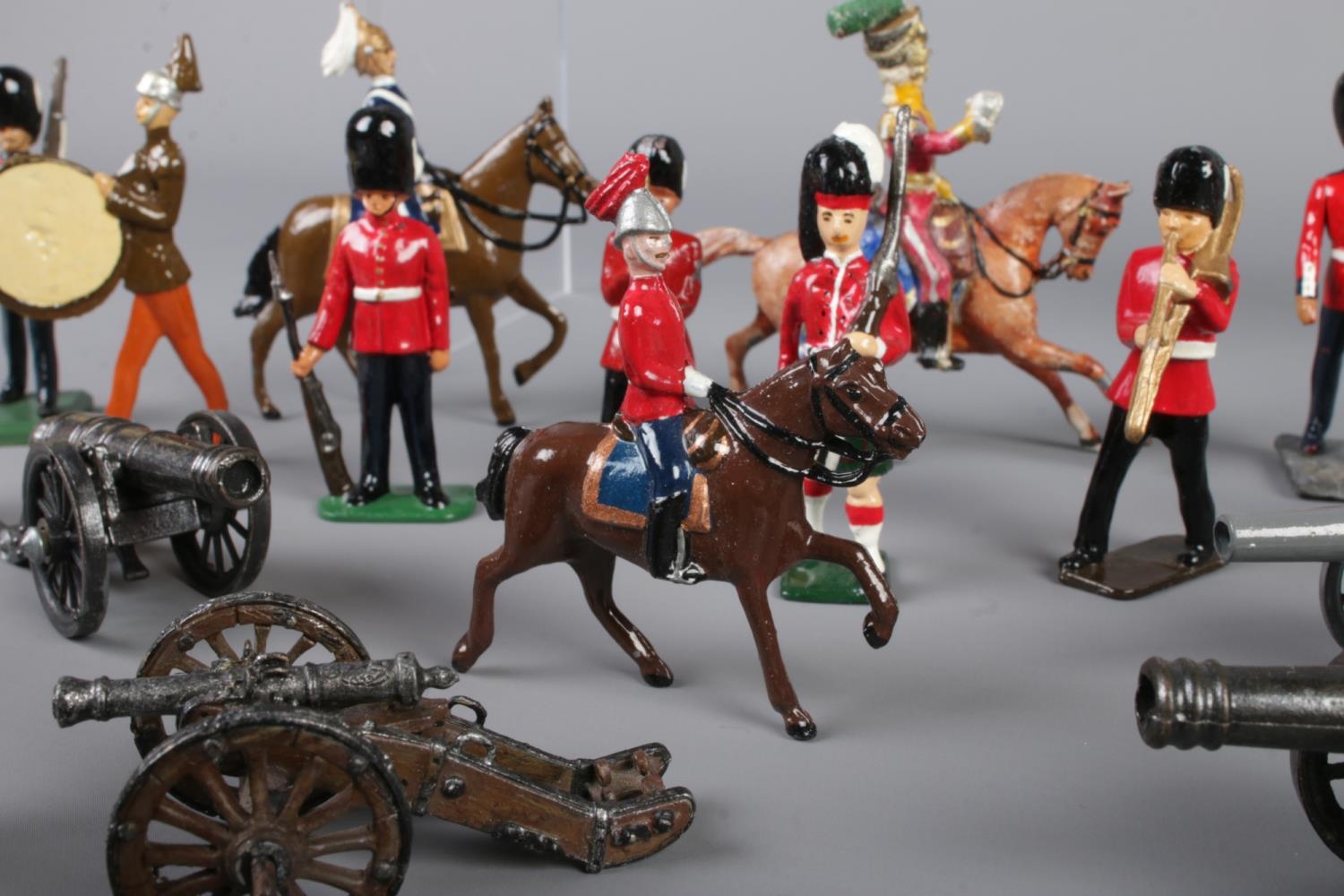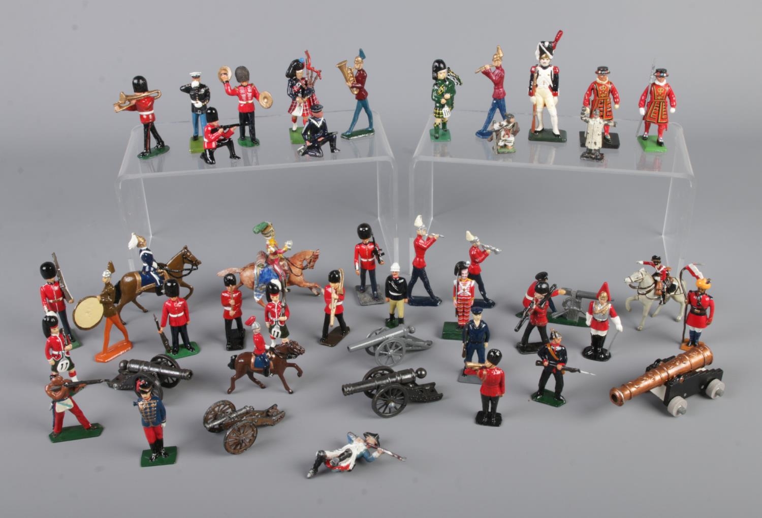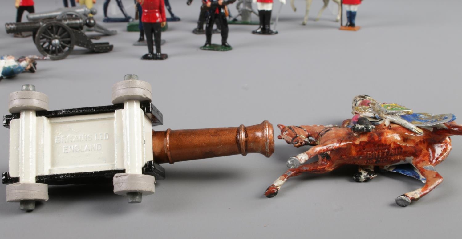 A good collection of lead military figures to include several Britains examples, Beefeaters, Cavalry, Cannons, etc.