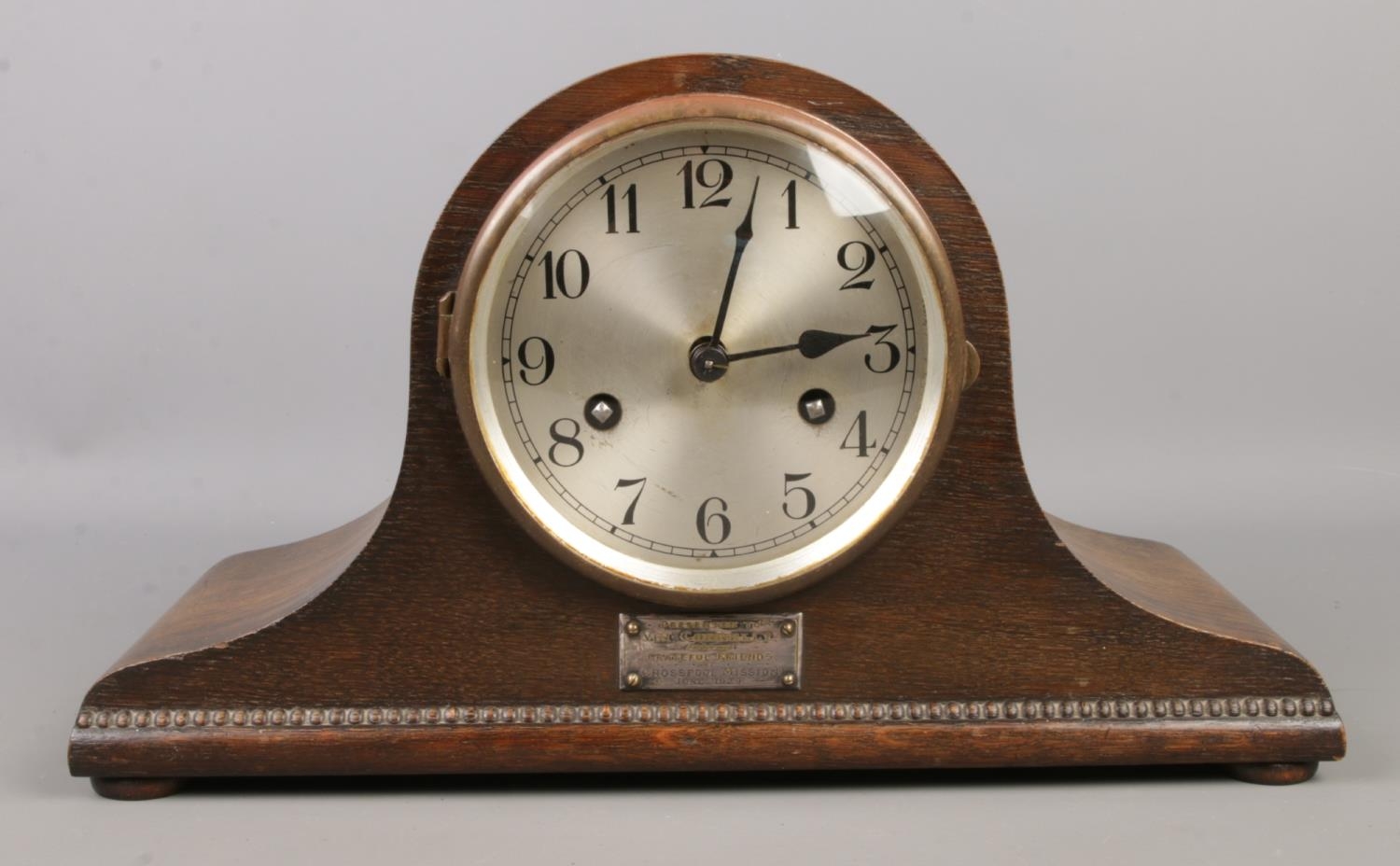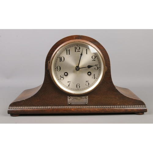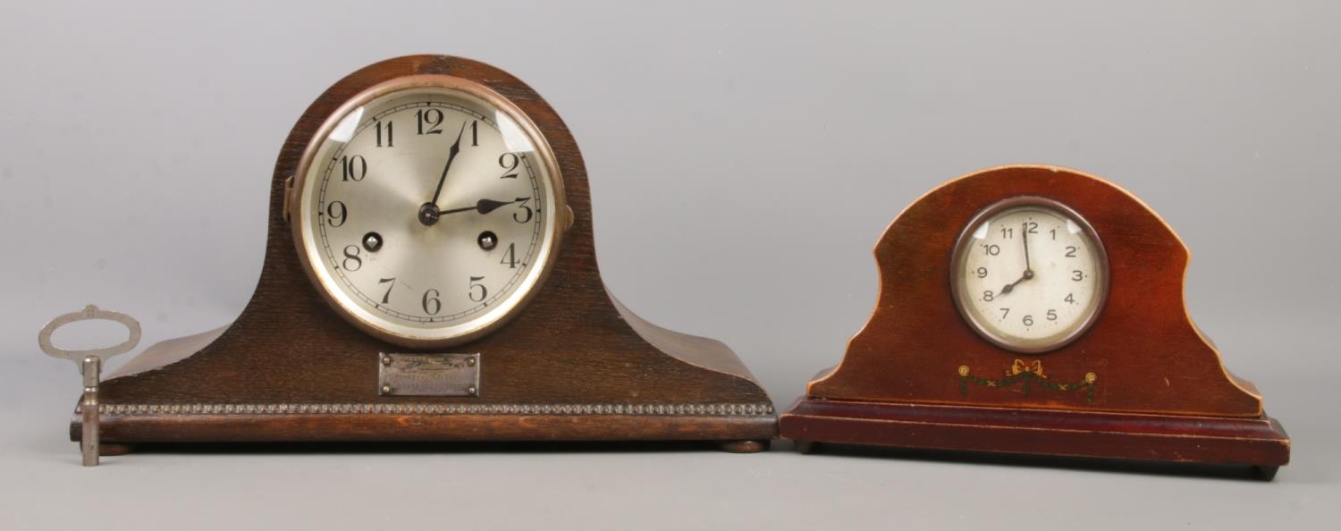 A collection of two vintage Napoleon hat mantel clocks, the larger by Uhrenfabrik Mühlheim Germany with a metal plaque dated 1929.