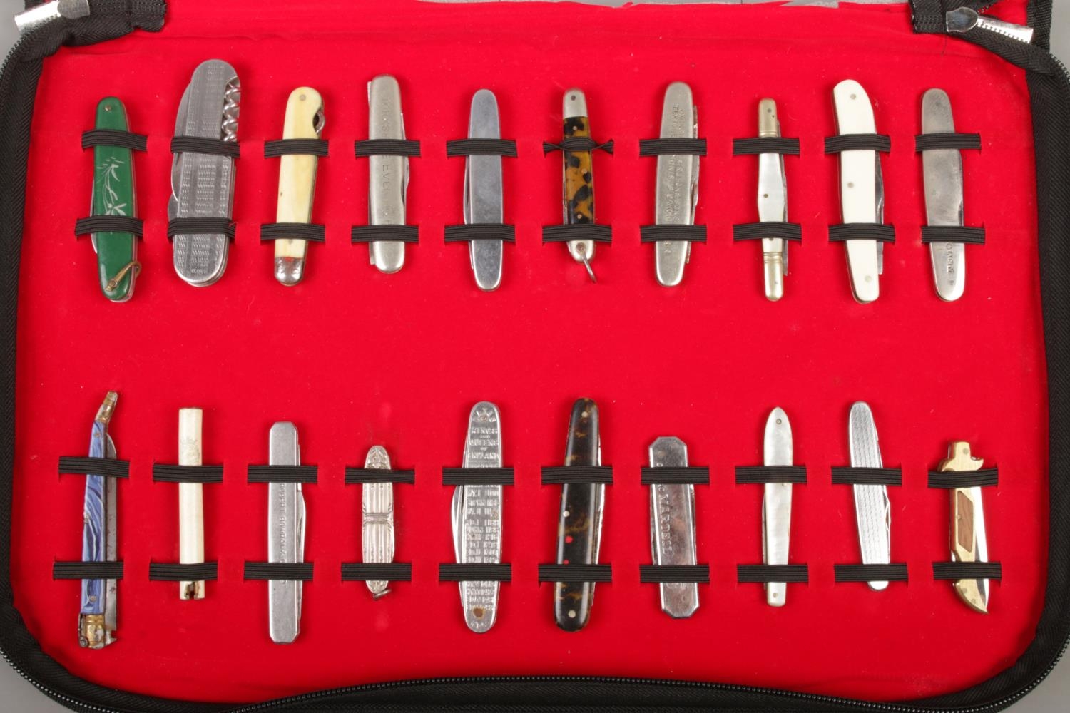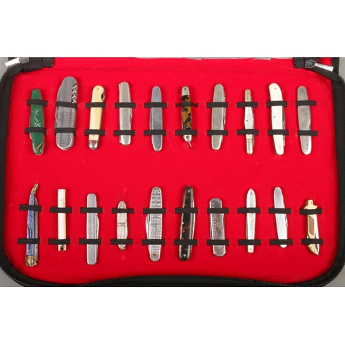 A display sleeve containing twenty folding knives. To include Humphreys, Senior Service cigarette, 'Kings and Queens of England' King George VI Coronation, Richards and Mulberry examples. CANNOT POST.
