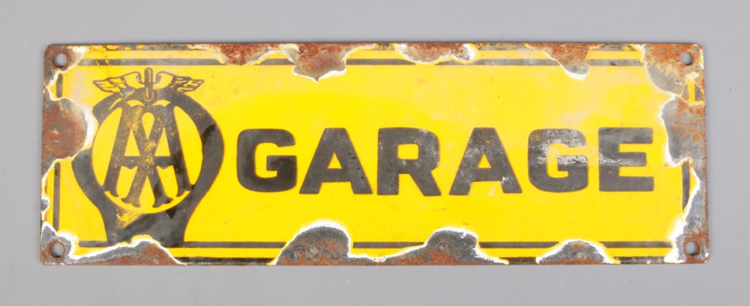 An enamel strip advertising sign for 'AA Garage'. Length: 30cm.