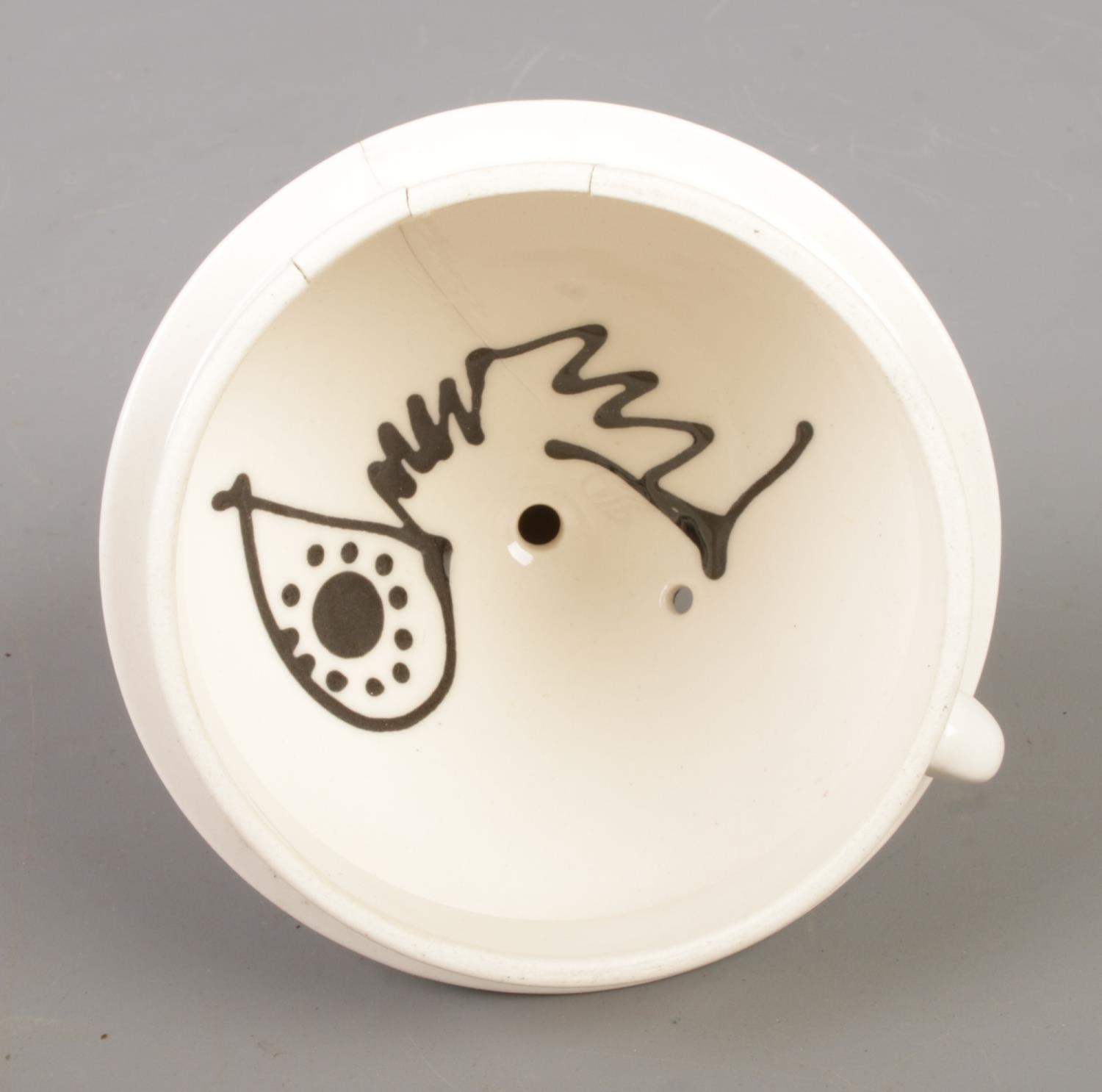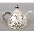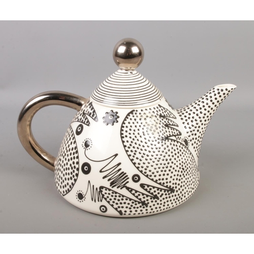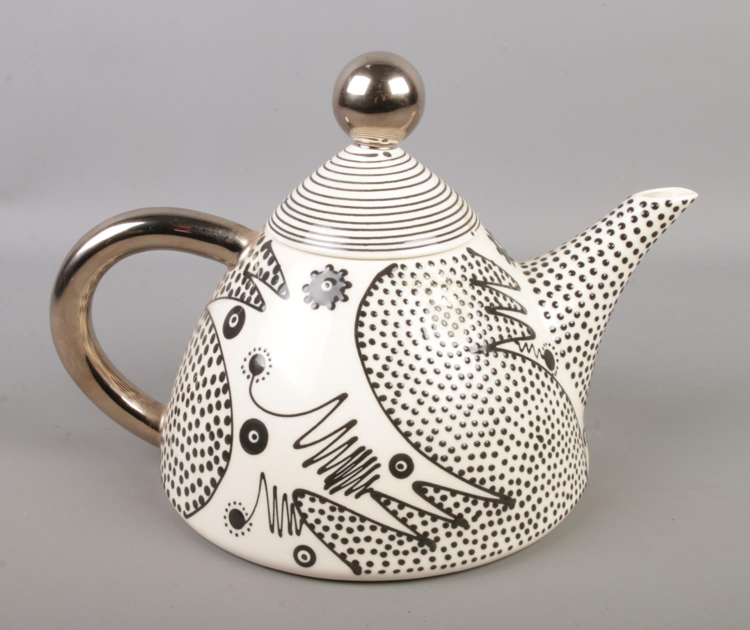 A Mark Dally contemporary monochrome 'Dot and Wiggle' teapot featuring platinum lustred handle with all over slip trailed abstract design.