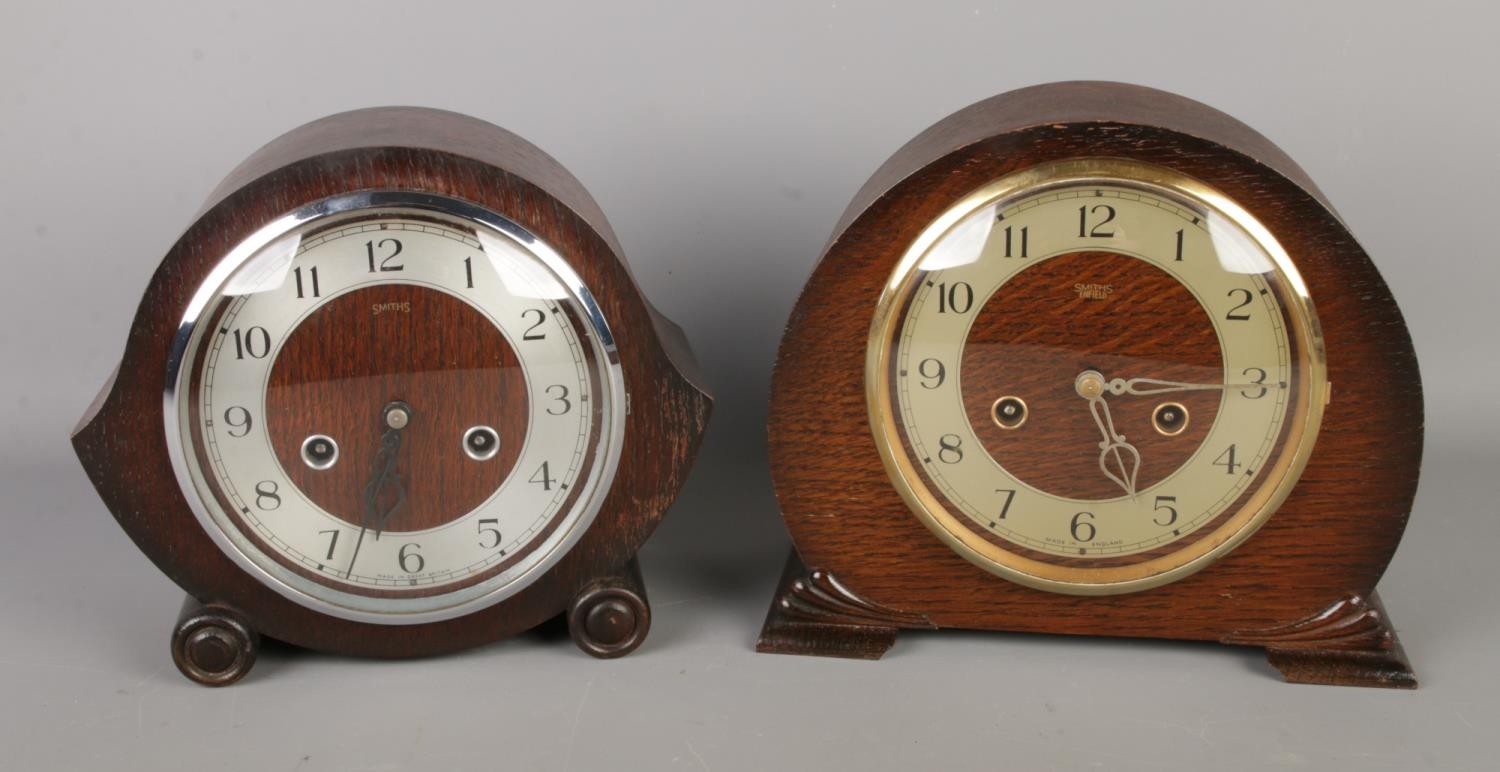 Two wooden cased mantel clocks to include Smiths and Smith Enfield examples.
