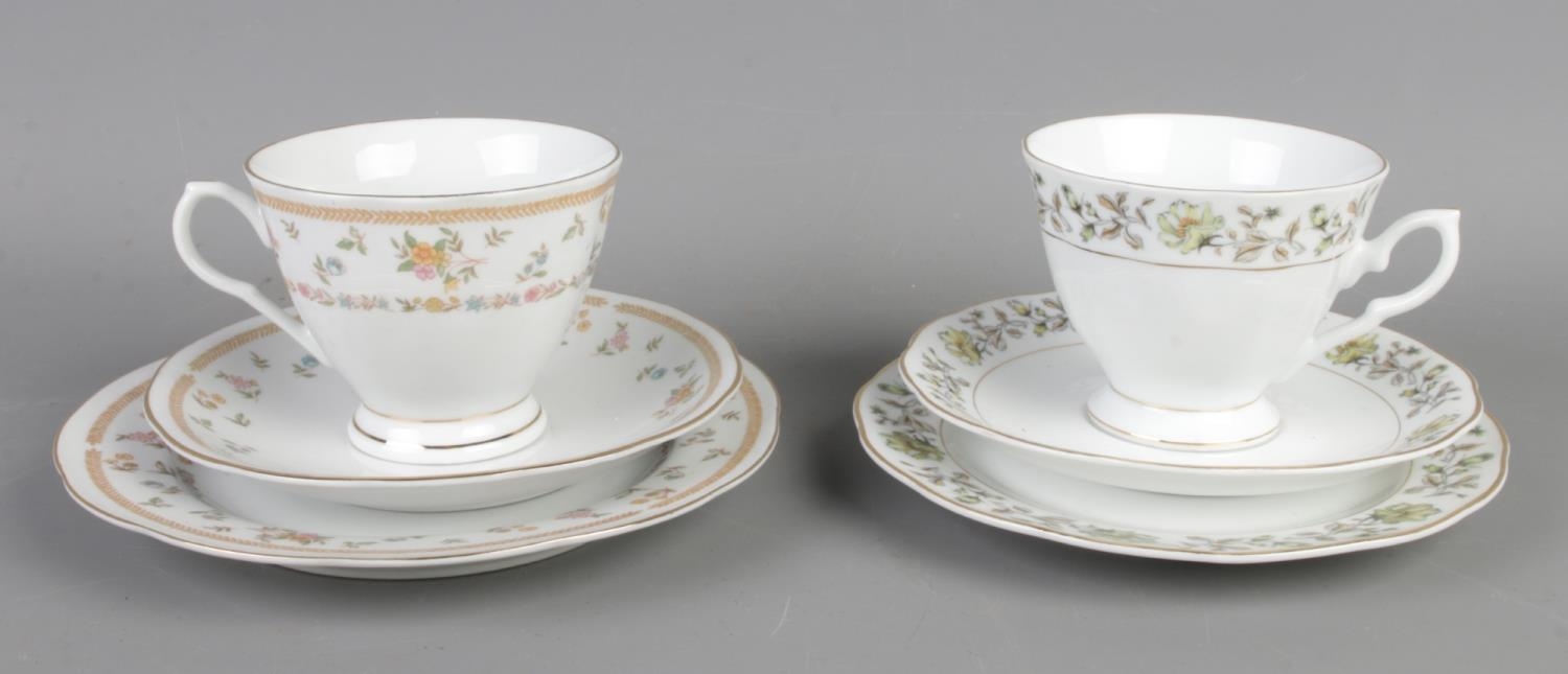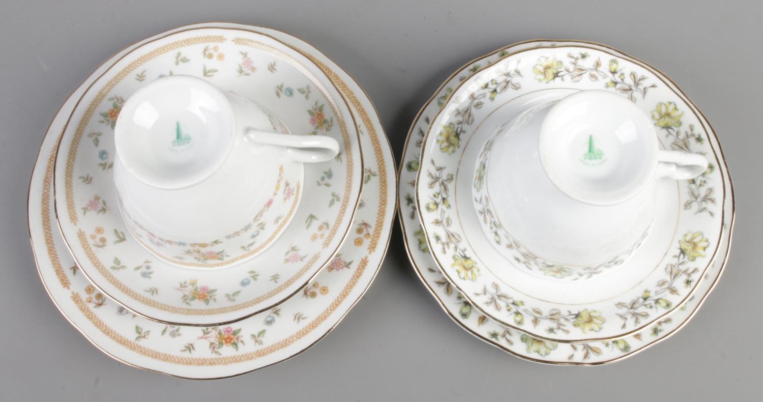 Two sets of vintage Chinese tea cups & saucers for six, total 36 pieces.