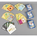 A large collection of Pokemon trading cards with two plush soft toys, Charmander (H18cm) and Lucario (H23cm).