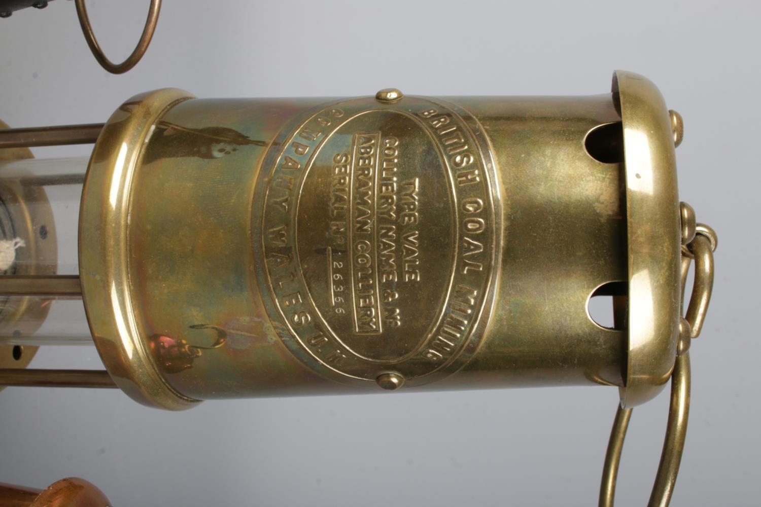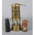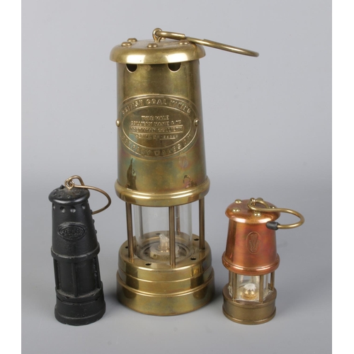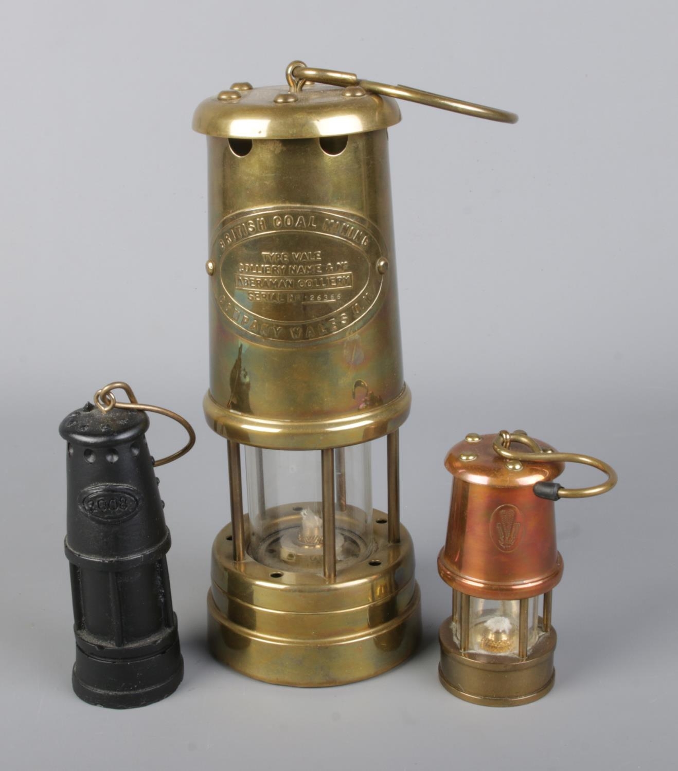 A British Coal Mining Company miners safety lamp issued for Aberaman Colliery (no. 126366) along with two small lamp examples.