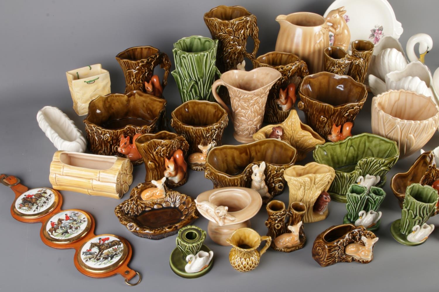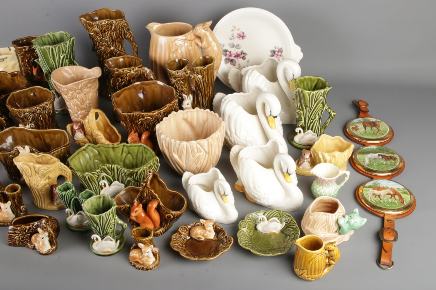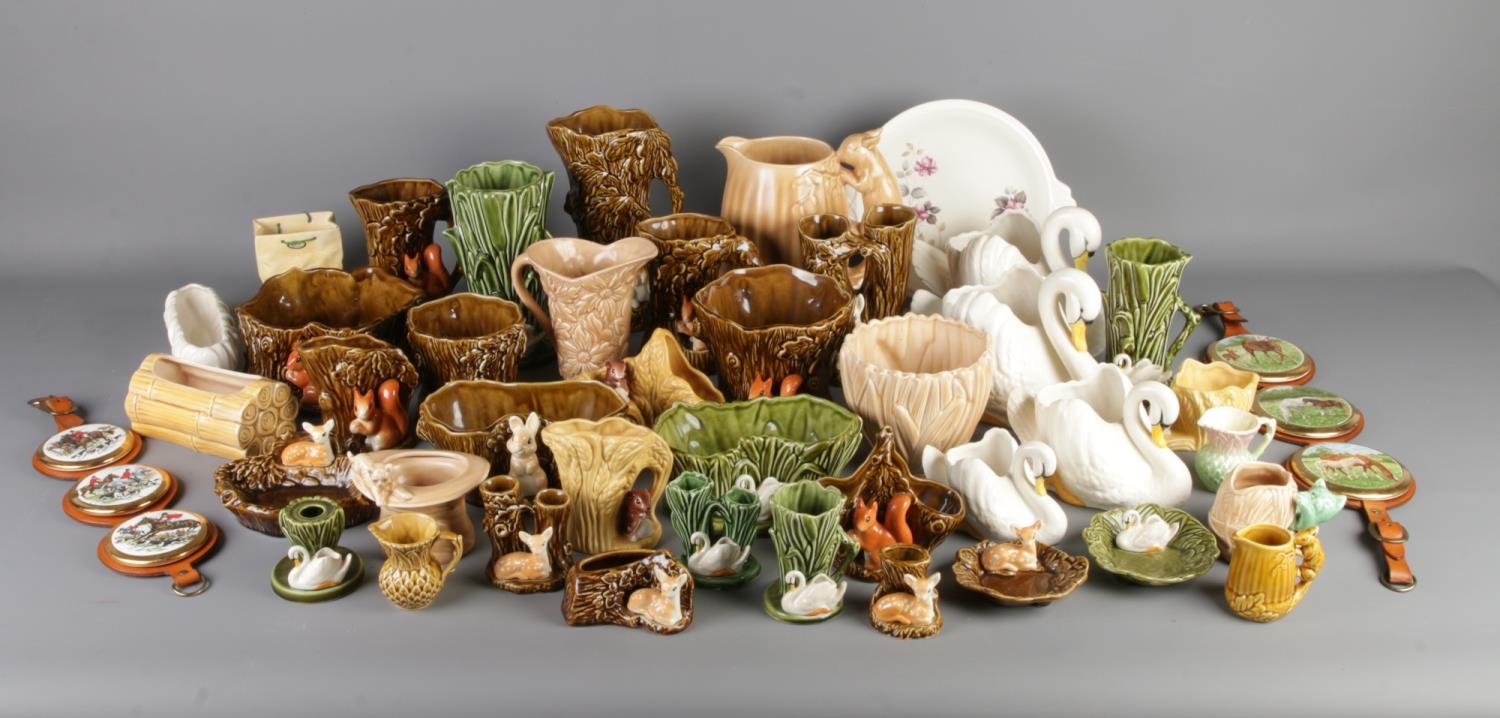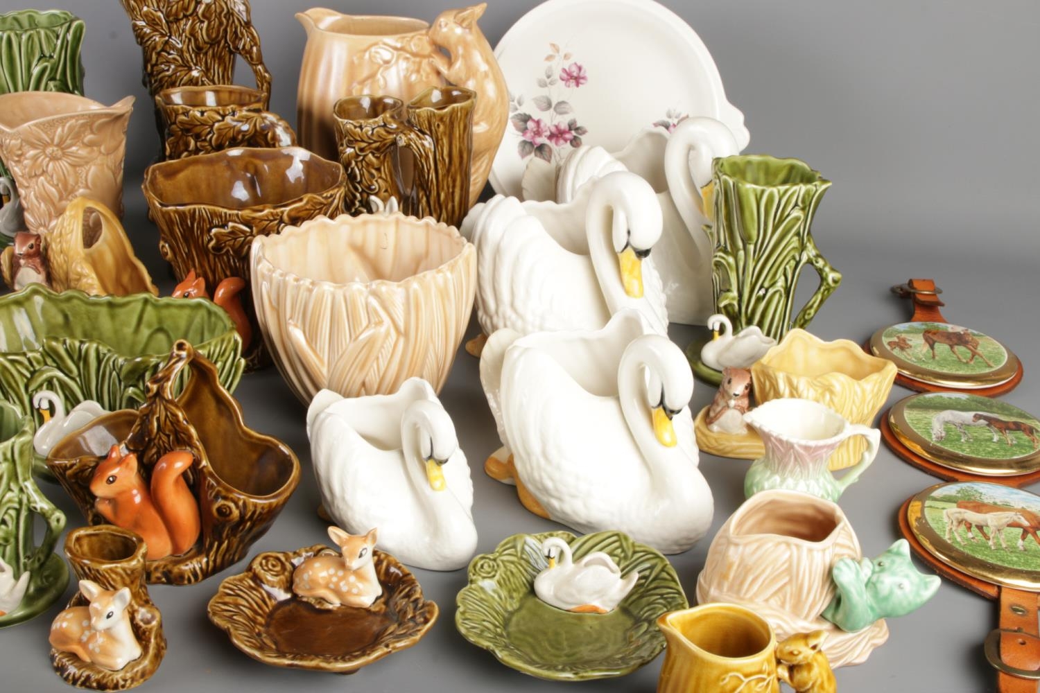 A very large quantity of Sylvac Pottery including swans, woodland creatures, vases etc including model numbers 4242, 4240, 4241, 5244, 477, 4375, 1959