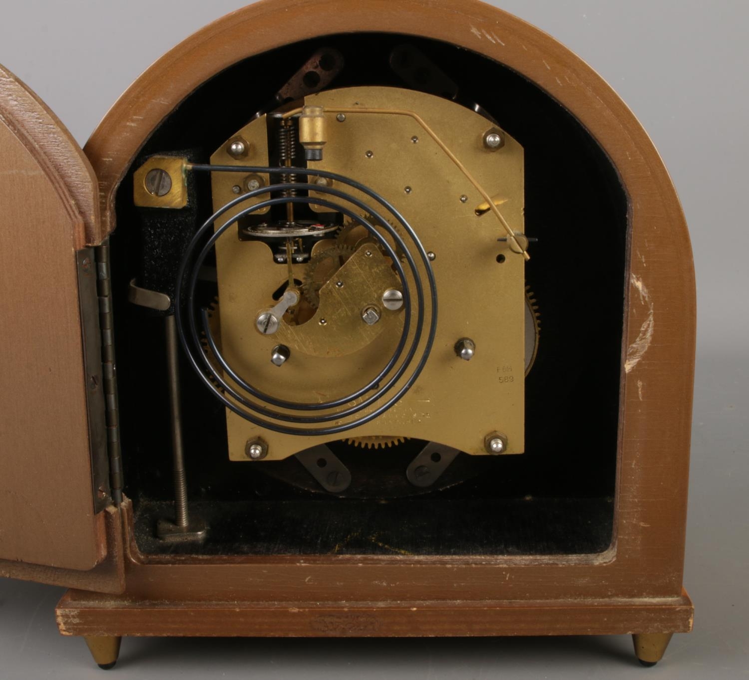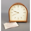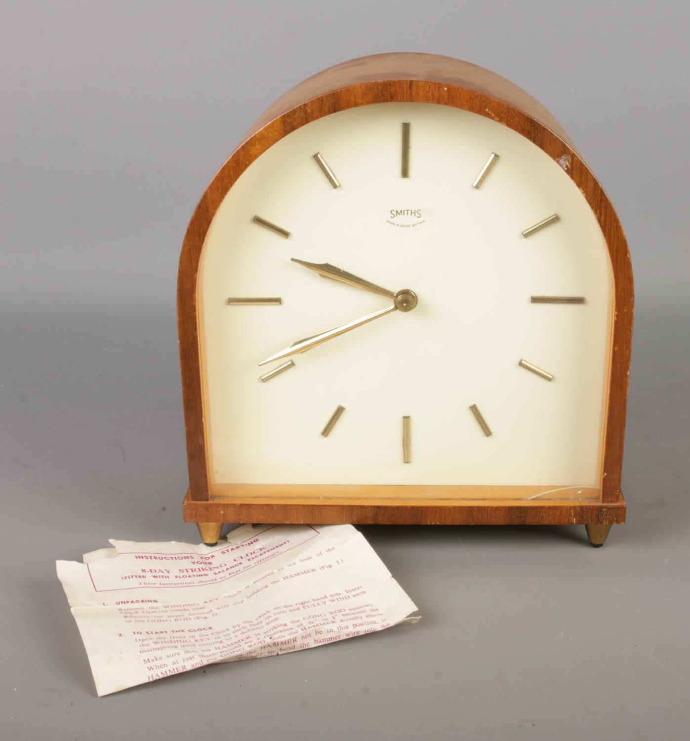A circa 1950's Smiths 8 day floating balance mantel clock with dome top and baton markers.