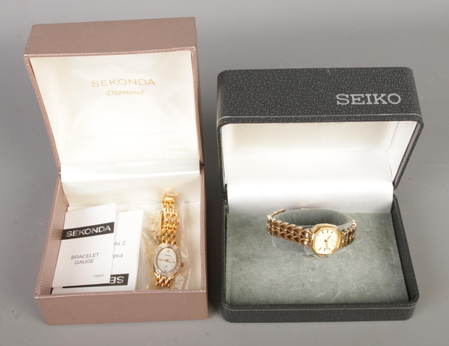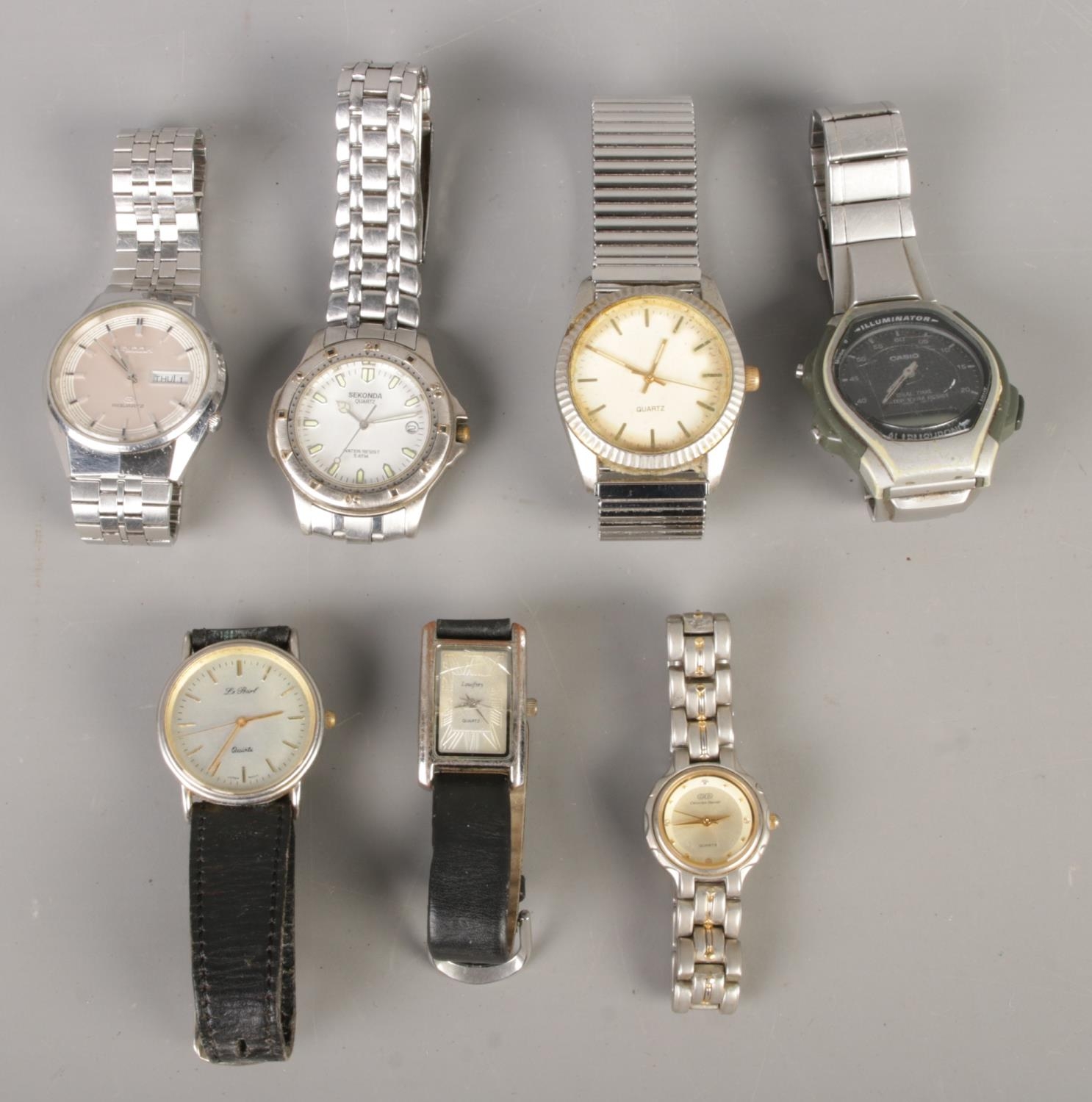 Watch examples include Seiko, Sekonda, Casio, Ricoh etc; Pens include a Scroll Companion set, a Conway Stewart pencil and another fountain pen.