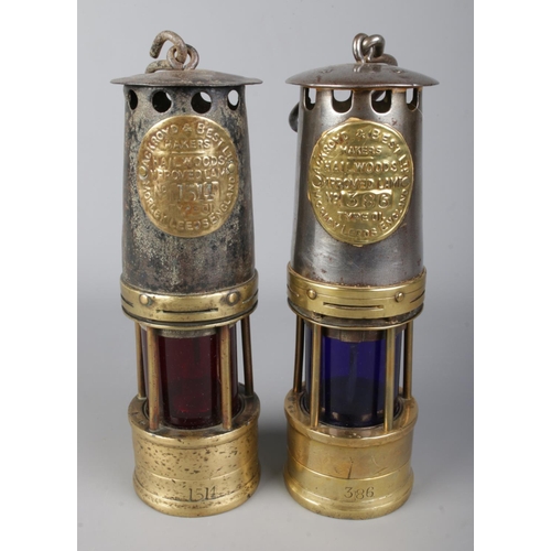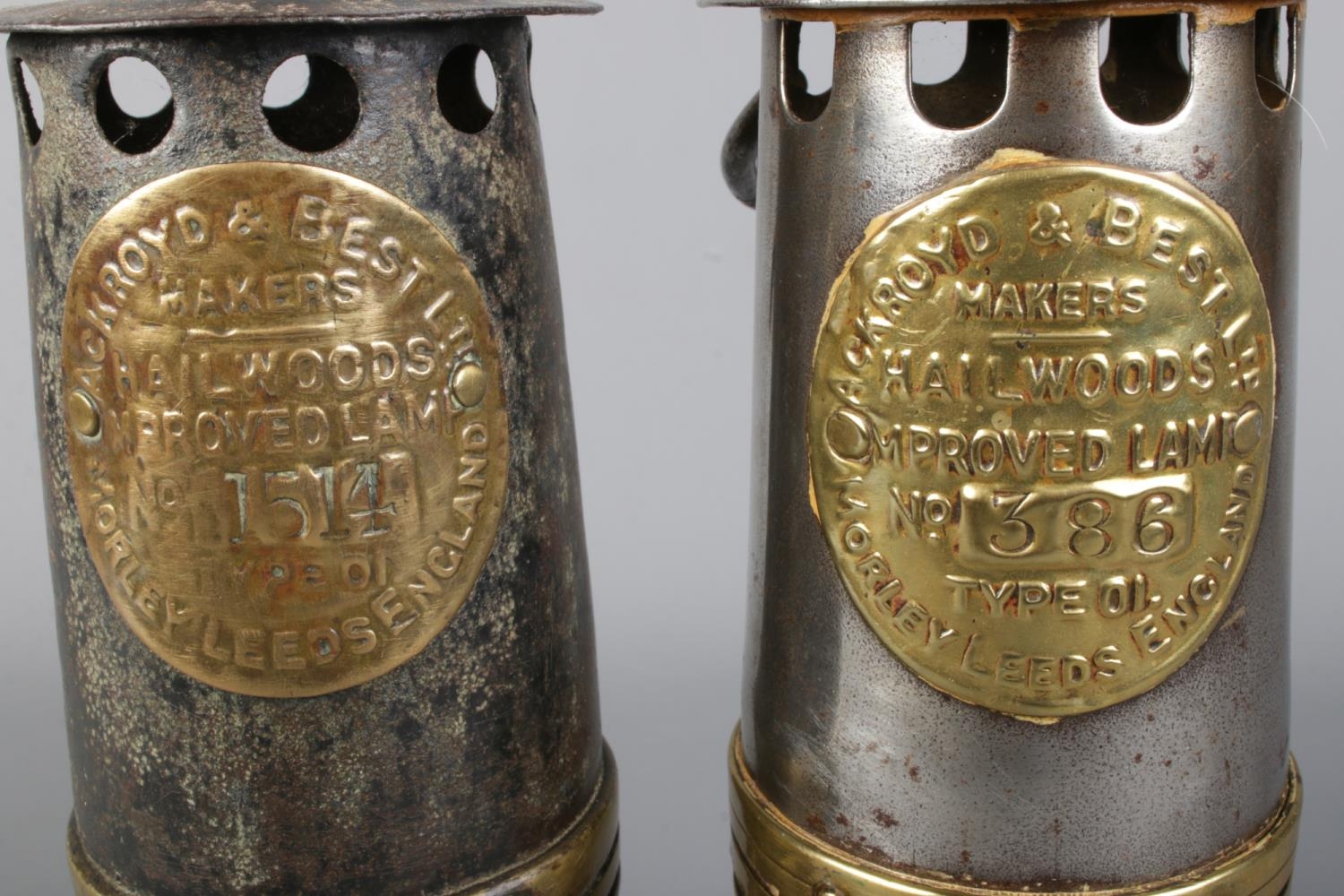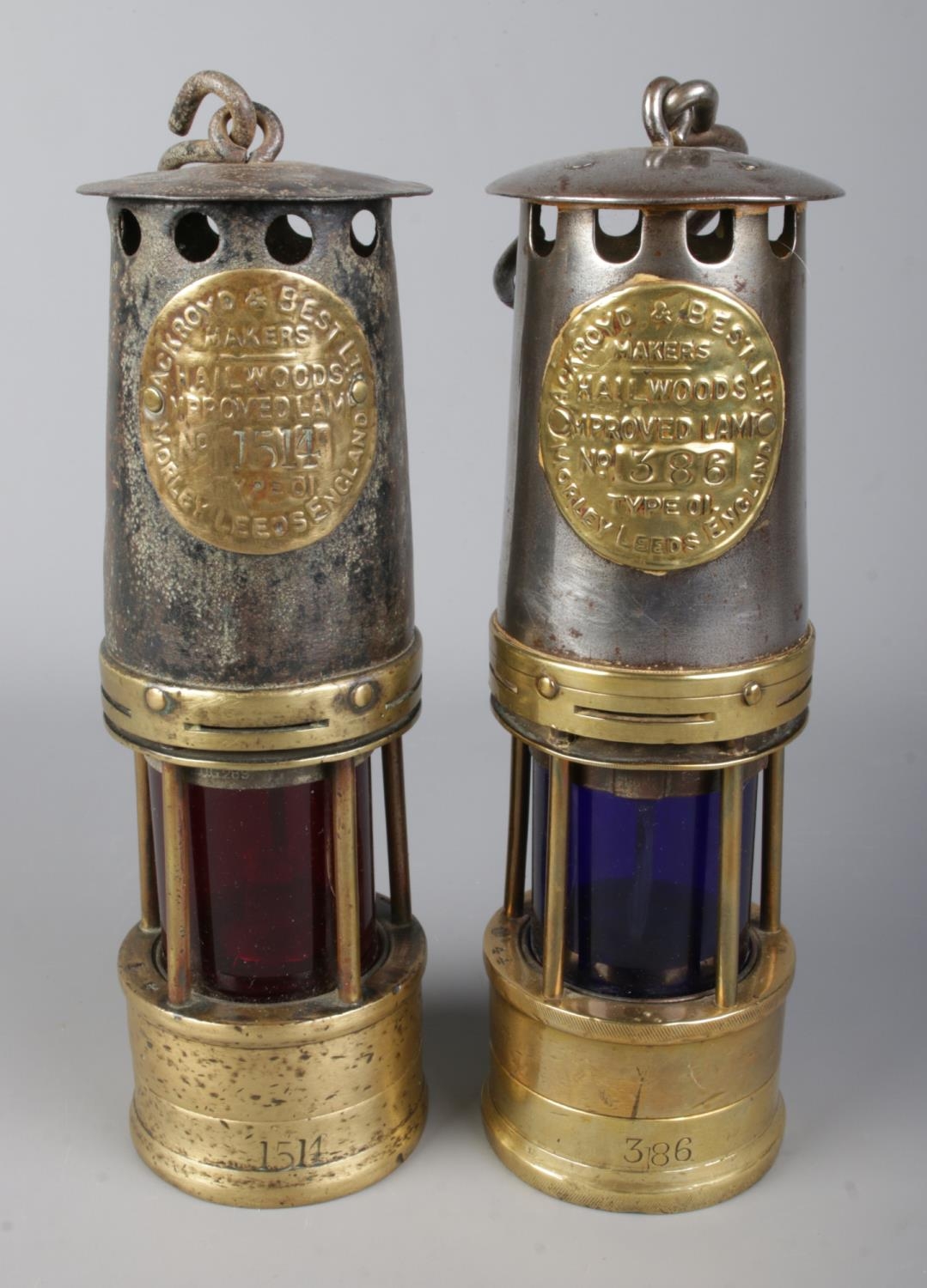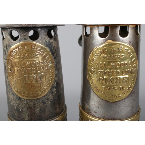 Two Ackroyd & Best Hailwoods Type 01 miners safety lamps, No. 1514 and No.386.