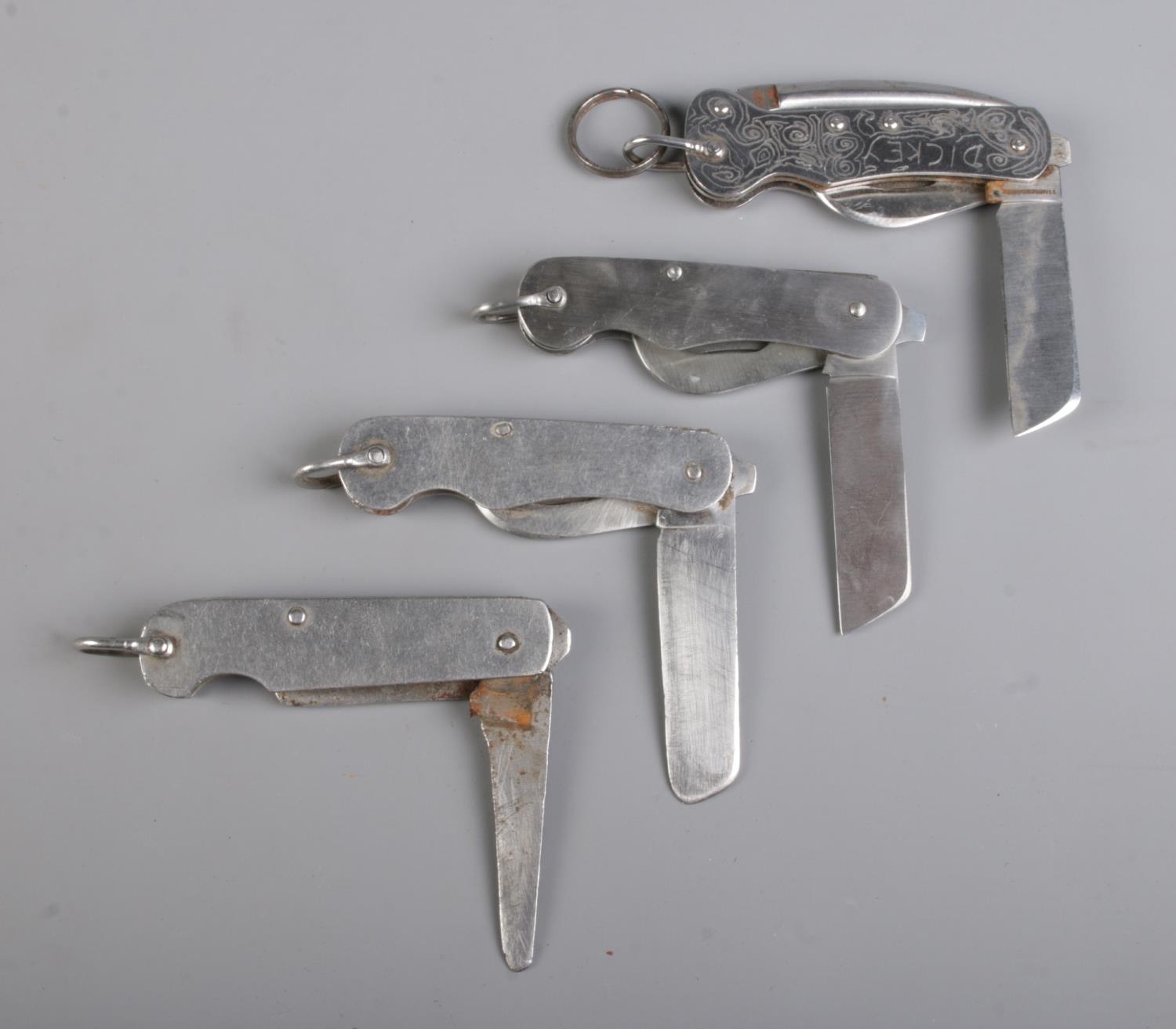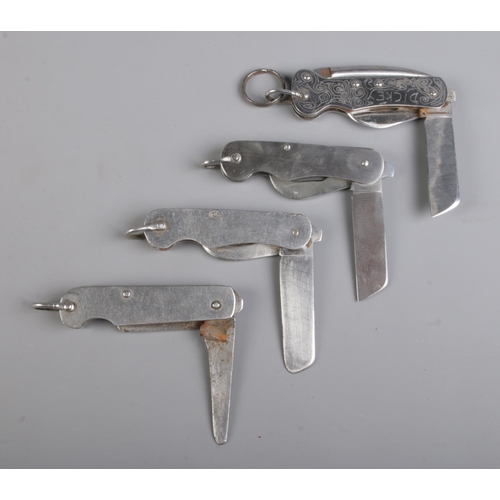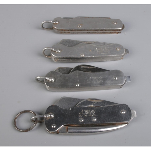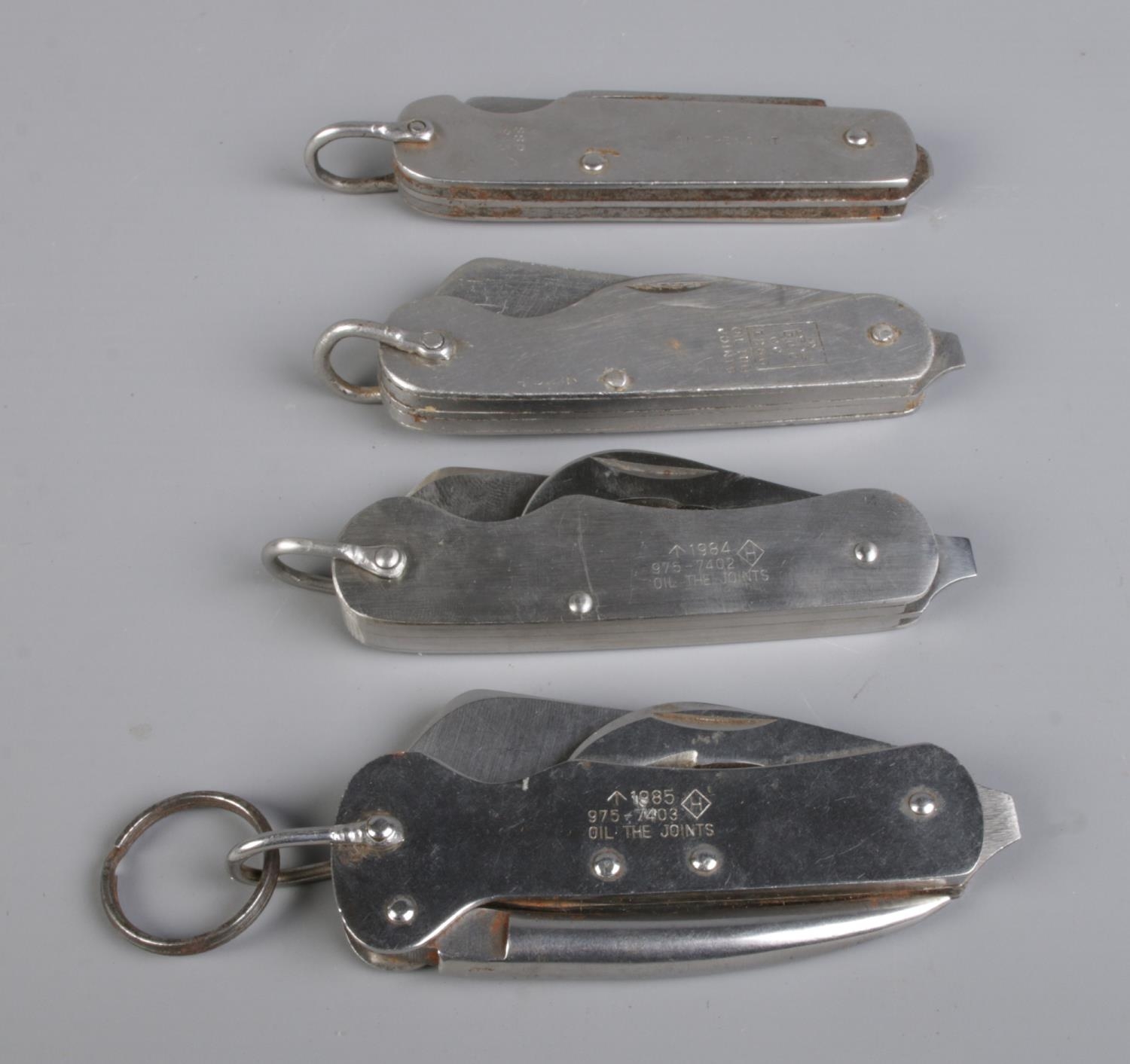 Four stainless steel military jack knives; SSP 1945, 1954, 1984 and 1985. CANNOT POST.
