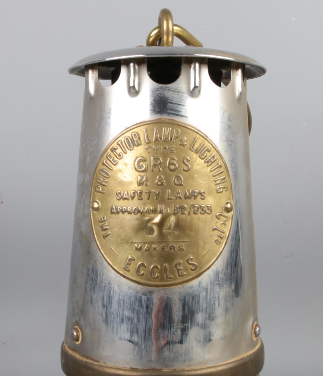 An Eccles Type GR6S M&Q miner's safety lamp, by The Protector Lamp and Lighting Co. Ltd.